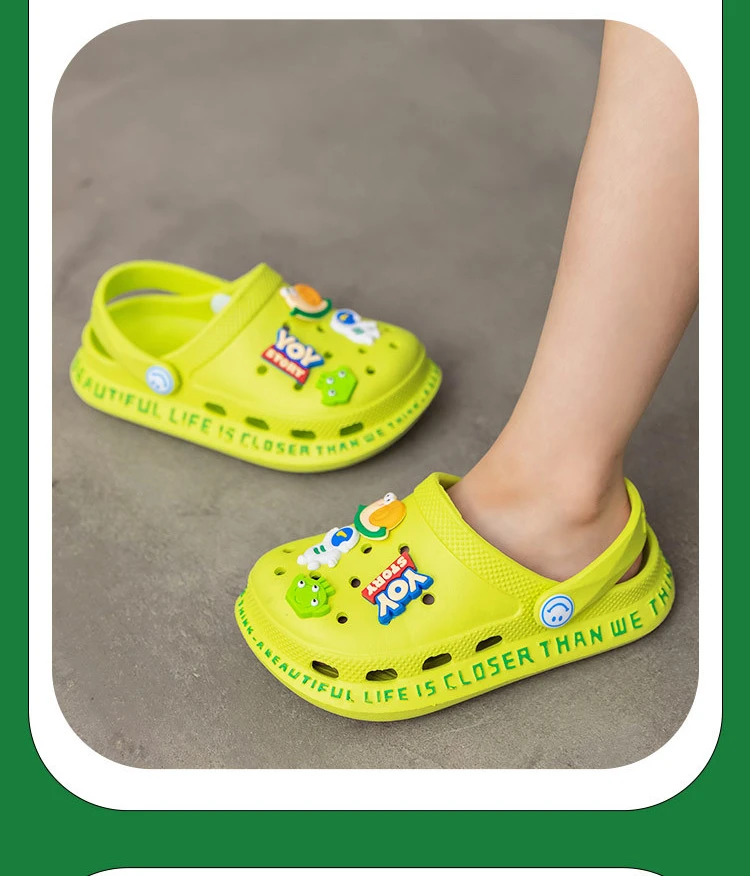A sola é antiderrapante, garantindo uma ótima aderência em diferentes superfícies, proporcionando estabilidade e segurança ao caminhar. Isso torna os Crocs Toy Story uma escolha popular entre crianças e adultos para momentos de lazer e diversão.